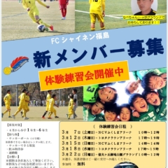 (体験練習会ご案内) 4月からの新学期スタートに伴い、 FCシャイネン福島ジュニアクラブ(小学生チーム)の体験練習会を開催いたし...