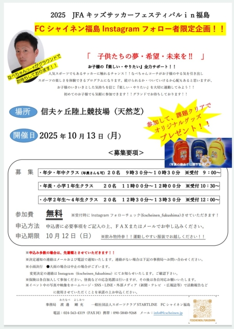 Fw:2025JFAキッズサッカーフェスティバルin福島開催決定ご案内!!