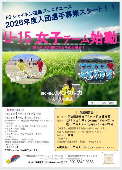 FC シャイネン福島ジュニアユース 女子第 1 期生募集 ご案内