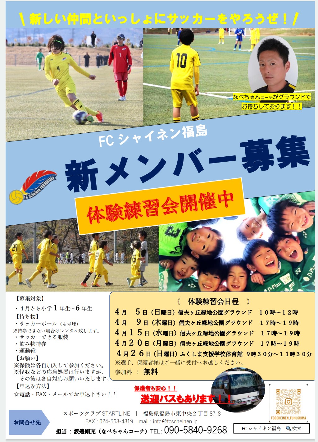 4月からの新学期スタートに伴い、 FCシャイネン福島ジュニアクラブ(小学生チーム)の体験練習会を開催いたします!!